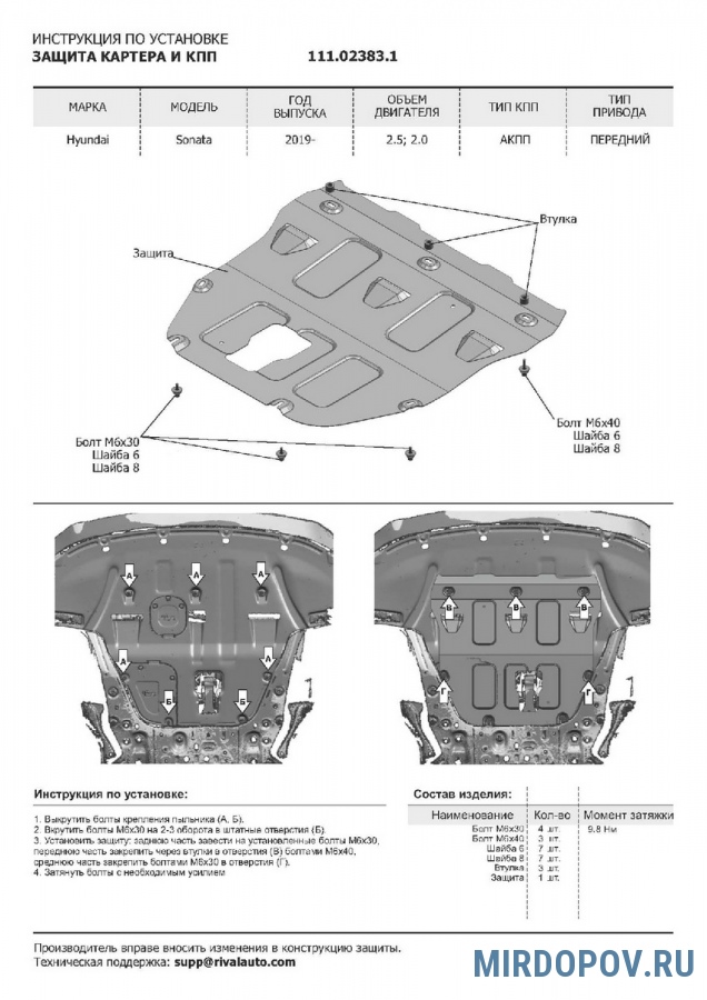 - Аксессуары обеспечивают надежную защиту подкапотного пространства со стороны днища авто.