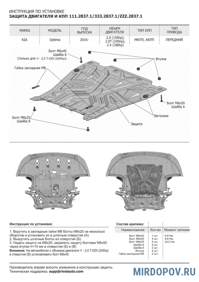 • Алюминиевые и стальные защиты картера «RIVAL PLATE»