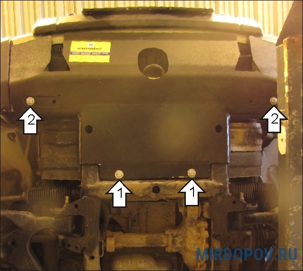 Для обеспечения безопасности передних пассажиров, производитель оставил открытыми задние точки крепления к кузову, чтобы защита не препятствовала двигателю уйти вниз, при лобовом столкновении.