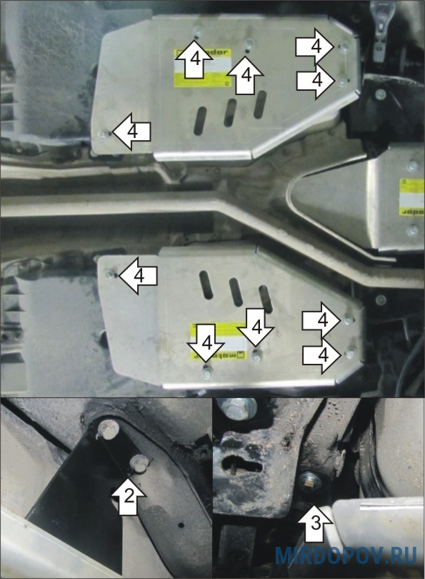 Все защиты картера устанавливаются в штатные места и не требуют никаких доработок!