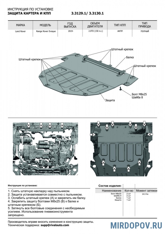 Алюминиевые защиты Rival надежно защищают днище вашего автомобиля от повреждений, например при наезде на бордюры, а также выполняют эстетическую функцию при установке на высокие автомобили.