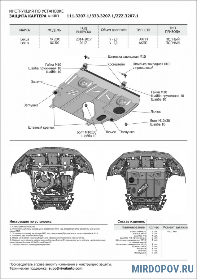 Стальные защиты картера Rival надежно защищают днище вашего автомобиля от повреждений при наезде на бордюры, выступающие канализационные люки, кромки поврежденного асфальта или при ремонте дорог, не говоря уже о загородных дорогах.