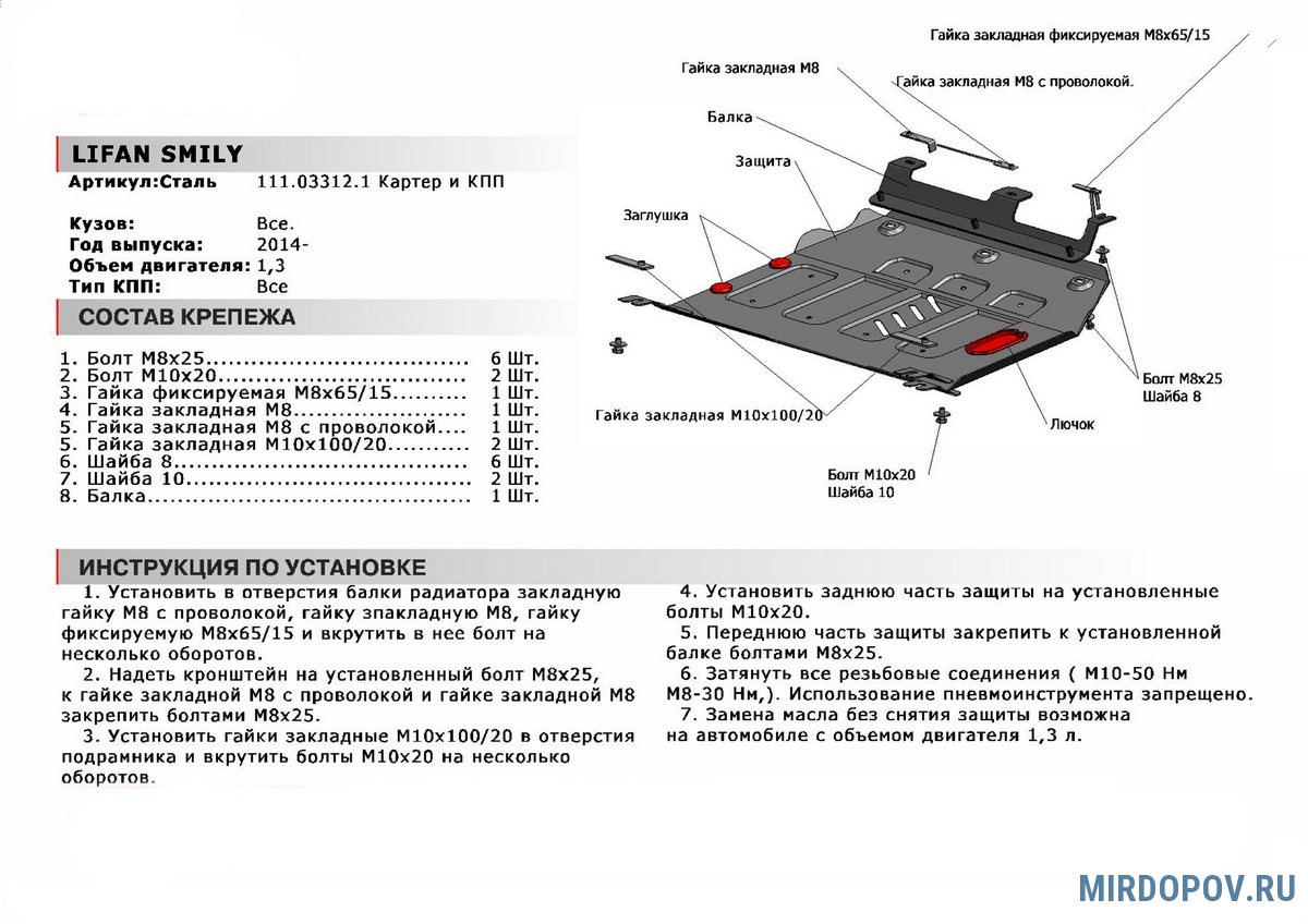 | Установка защиты картера, КПП, дифференциала, раздатки, радиатора - 1 деталь | 1000 руб. |