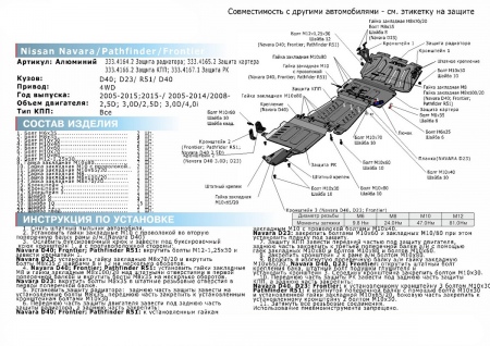 | Установка защиты картера, КПП, дифференциала, раздатки, радиатора - 1 деталь | 1000 руб. |