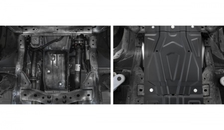 - В конструкции защиты присутствуют глубокие ребра жесткости, расположенные по всей площади изделий. Это обеспечивает высокую жесткость и ударопрочность защиты.