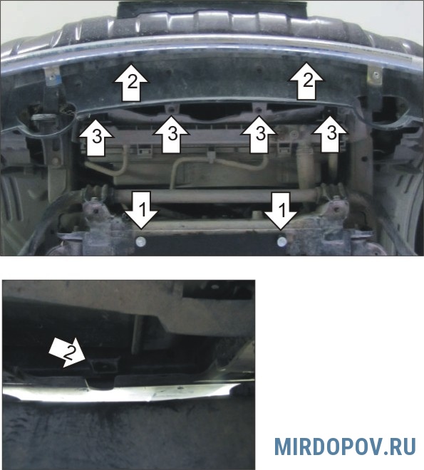 Все защиты картера устанавливаются в штатные места и не требуют никаких доработок!