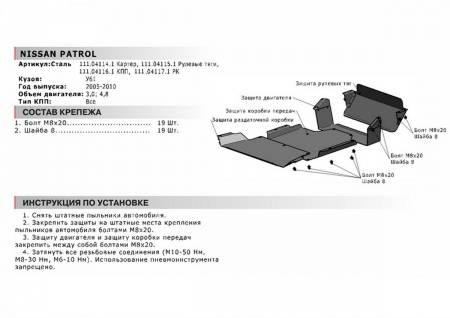 Защита рулевых тяг (сталь) Автоброня для Nissan Patrol (1997-2010) № 111.04115.1