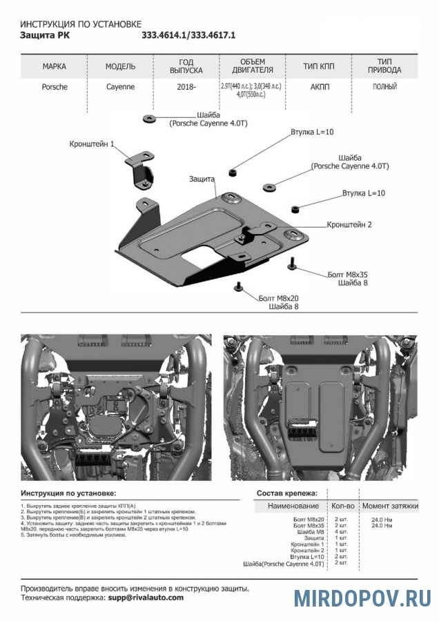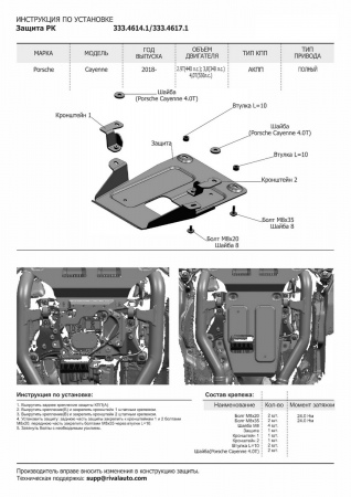 Защита РК (алюминий) Rival для Porsche Cayenne (2018-2024) № 333.4617.1