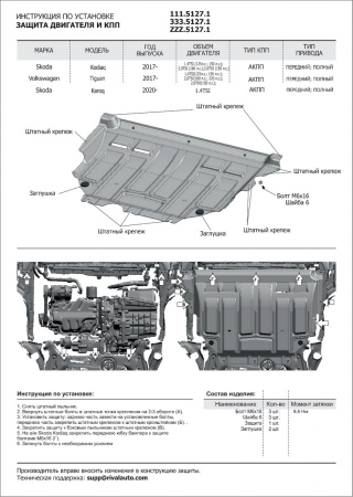 Защита картера и КПП (алюминий) Rival для Skoda Karoq (2020-2025) № 333.5127.1