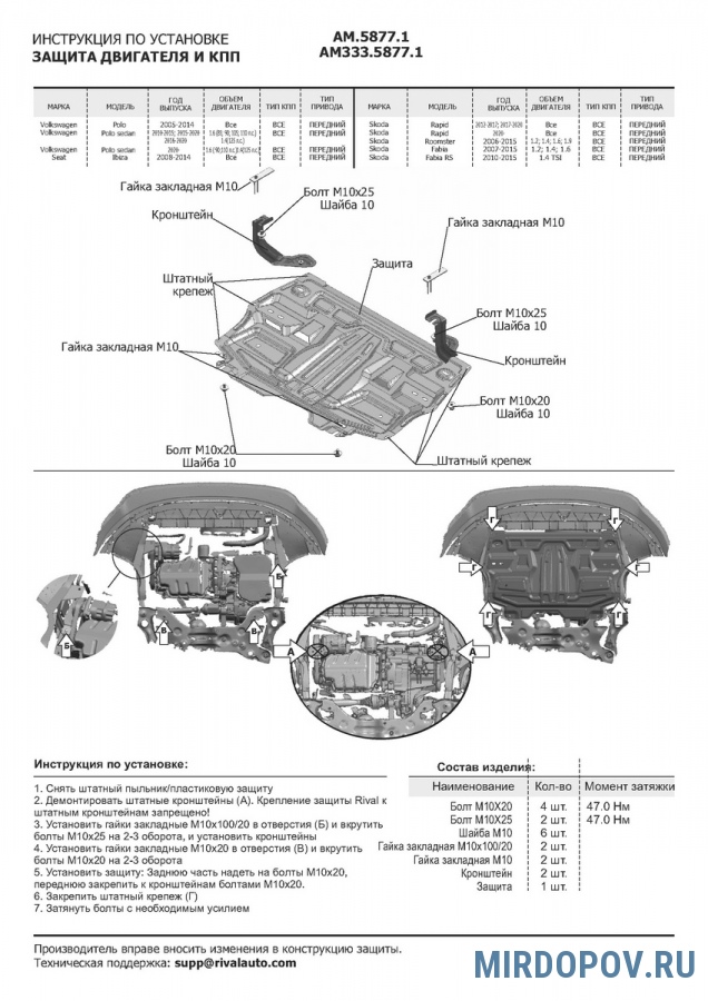 Защита картера и КПП (сталь) AutoMax для Skoda Rооmster (2006-2015) № AM333.5877.1