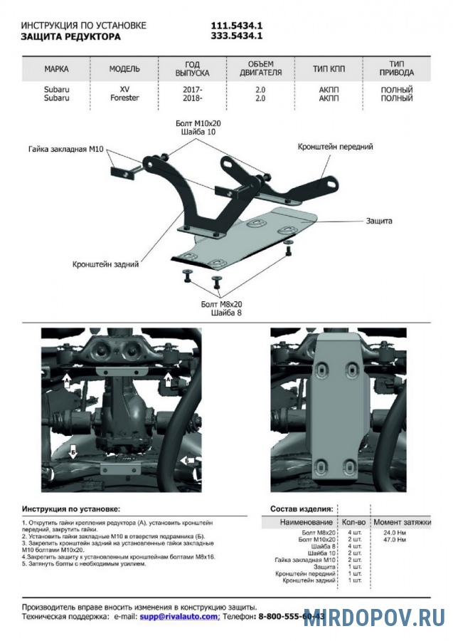 Защита редуктора (алюминий) Rival Subaru Forester (2018-2021) № 333.5434.1