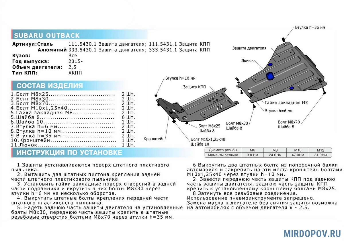 • Алюминиевые и стальные защиты картера «RIVAL PLATE»