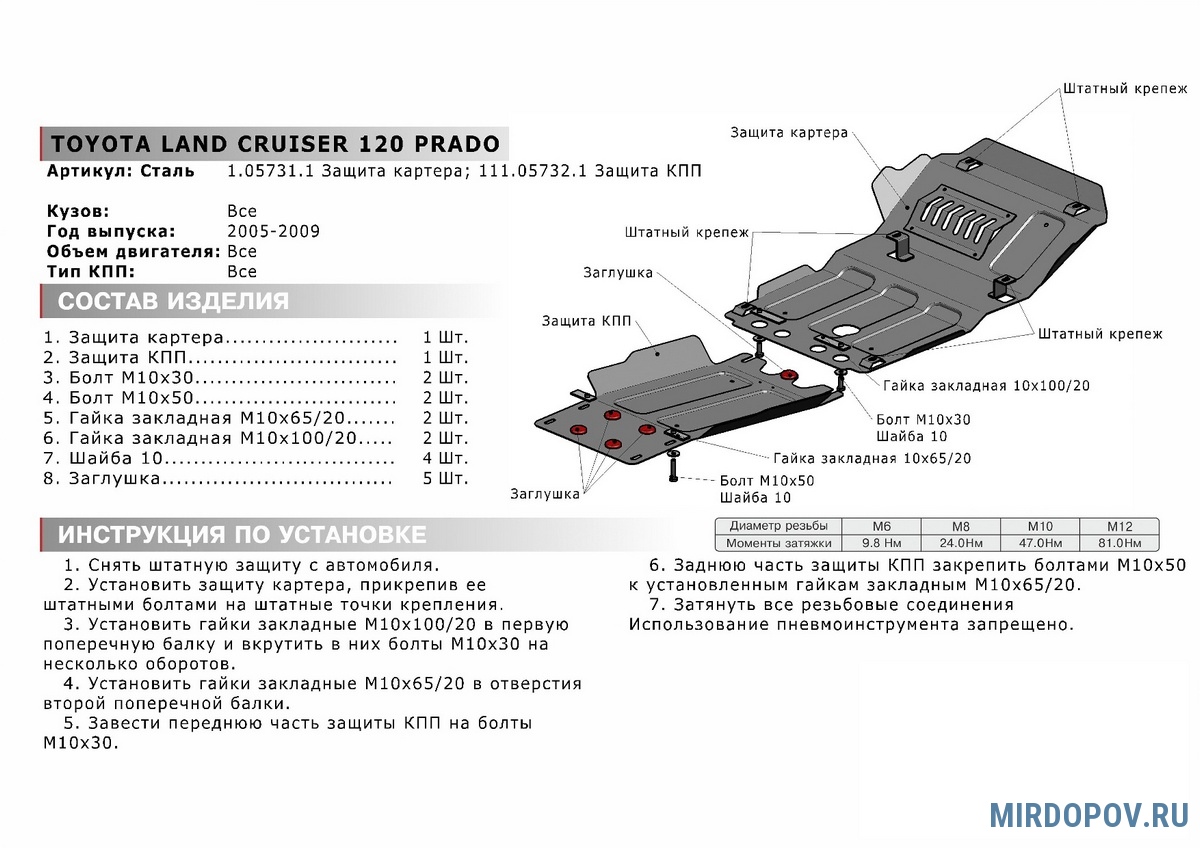 - Аксессуары обеспечивают надежную защиту подкапотного пространства со стороны днища авто.