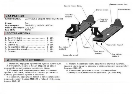 Защита бензобака (сталь) Автоброня для Уаз Патриот (2005-2014) № 222.06309.1