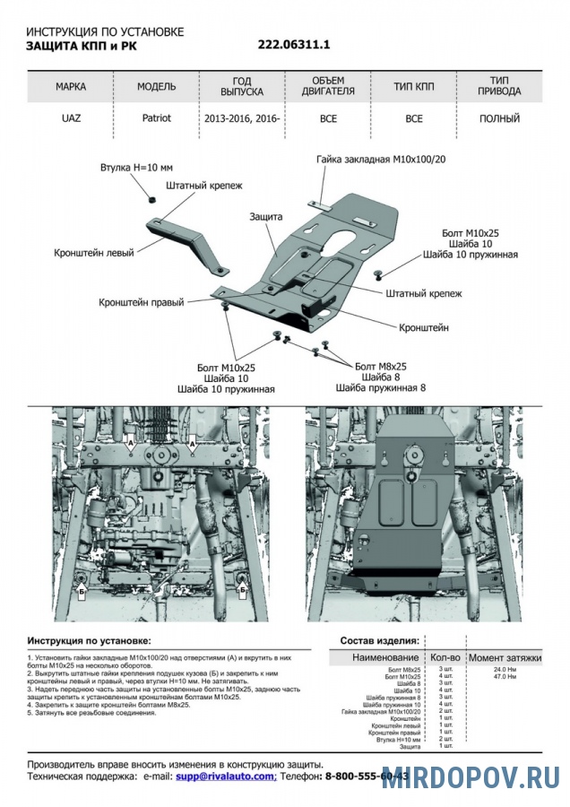 - Аксессуары обеспечивают надежную защиту подкапотного пространства со стороны днища авто.