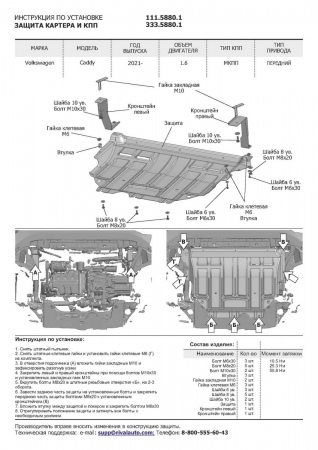 | Установка защиты картера, КПП, дифференциала, раздатки, радиатора - 1 деталь | 1000 руб. |