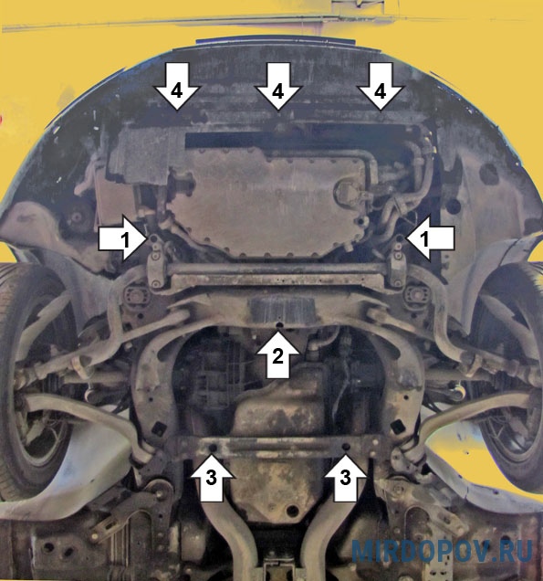 Все защиты картера устанавливаются в штатные места и не требуют никаких доработок!
