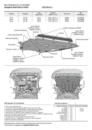 Защита картера и КПП (алюминий) Rival для Volvo XC40 (2018-2025) № 333.5913.1