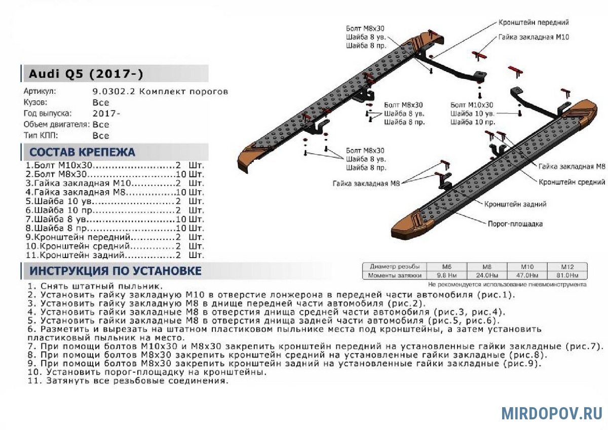 - Простота установки за счет точного совпадения штатных отверстий с элементами крепежа защиты.
