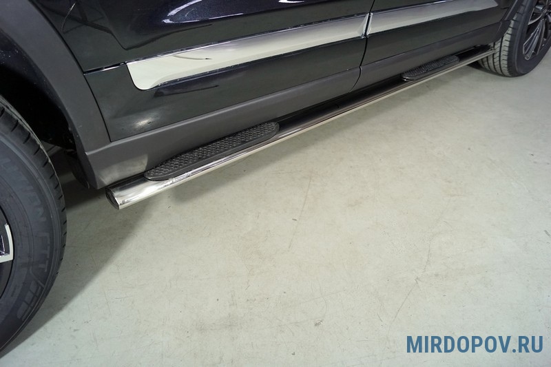 Пороги овальные с накладкой 75х42 мм Chery Tiggo 8 Pro (2021-2025) № CHERTIG8P21-16
