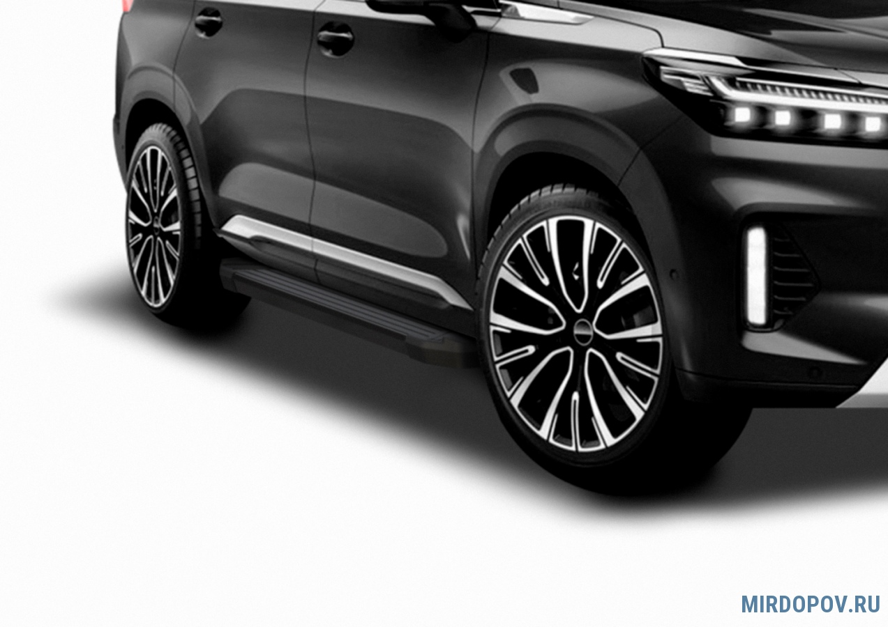 Пороги алюминиевые Black дляExeed VX (2021-2025) № F193ALB.0906.1