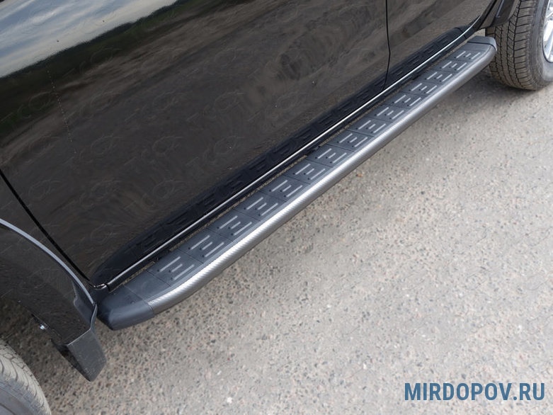 Пороги алюминиевые с пластиковой накладкой KARBON серые Fiat Fullback (2016-2019) № FIAFUL16-10GR