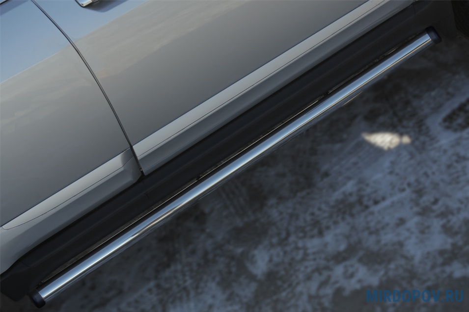 Пороги Russtal представляют собой накладки, выполненные в форме труб, которые создаются специально для конкретной модели автомобиля. В своем производстве специалисты ведущей российской компании используют полированную нержавеющую сталь итальянского производства. Данный материал отличается стойкостью к образованию коррозии, не боится механических и ударных нагрузок, сохраняет первоначальные качества и внешний вид на протяжении всего периода эксплуатации.
