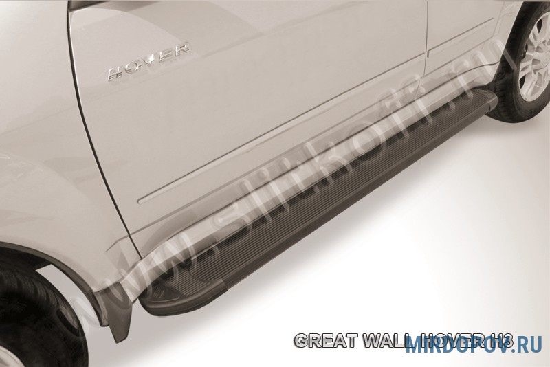 Пороги алюминиевые Slitkoff Optima Black черные Great Wall Hover H5 (2011-2020) № AL-GWH5001