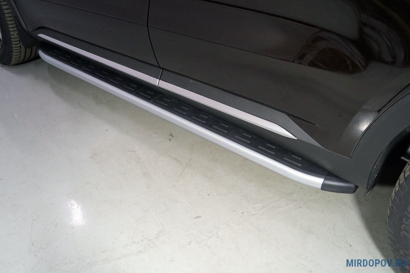 Пороги алюминиевые с пластиковой накладкой карбон серебро для Haval H5 (2024-2025) № HAVH524-10SL