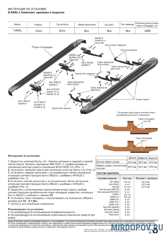 - Простота установки за счет точного совпадения штатных отверстий с элементами крепежа защиты.