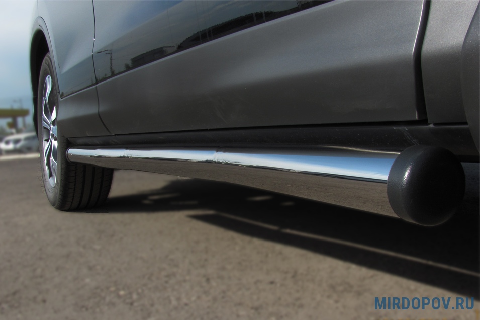 Пороги Russtal представляют собой накладки, выполненные в форме труб, которые создаются специально для конкретной модели автомобиля. В своем производстве специалисты ведущей российской компании используют полированную нержавеющую сталь итальянского производства. Данный материал отличается стойкостью к образованию коррозии, не боится механических и ударных нагрузок, сохраняет первоначальные качества и внешний вид на протяжении всего периода эксплуатации.
