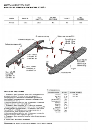 - Простота установки за счет точного совпадения штатных отверстий с элементами крепежа защиты.