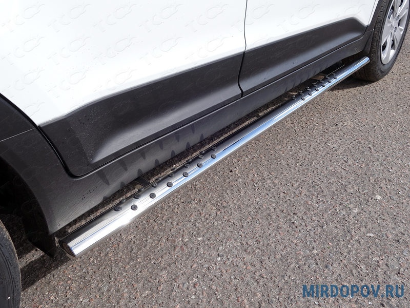 Пороги овальные с проступью 75х42 мм Hyundai Creta (2016-2021) № HYUNCRE16-17