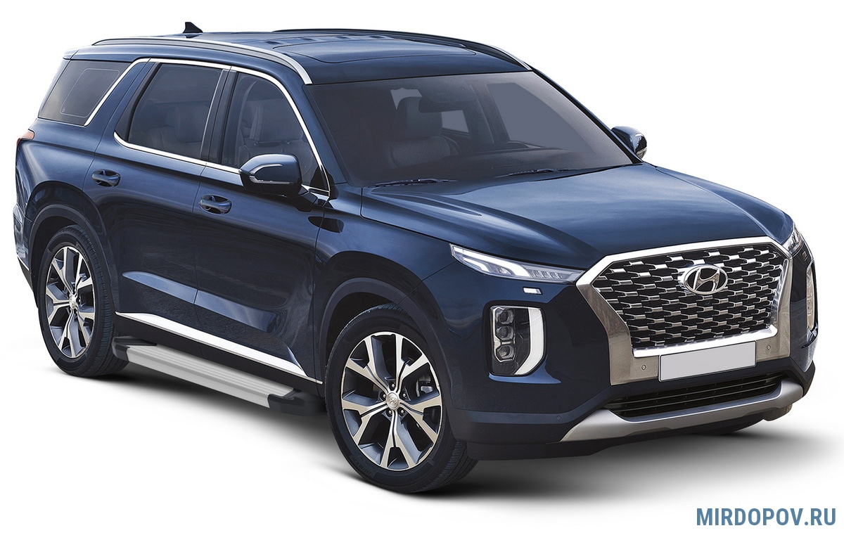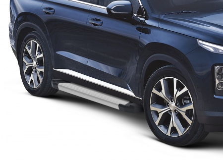 Пороги алюминиевые Silver для Hyundai Palisade (2021-2025) № F193AL.2311.1