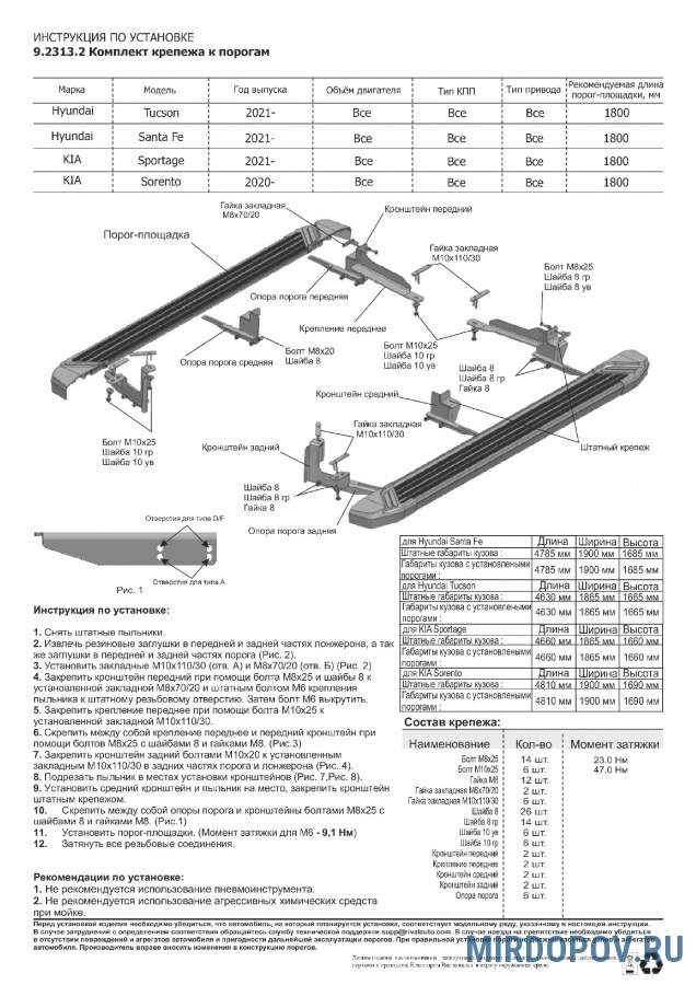 | Комплект | 2 порога, крепеж, инструкция |