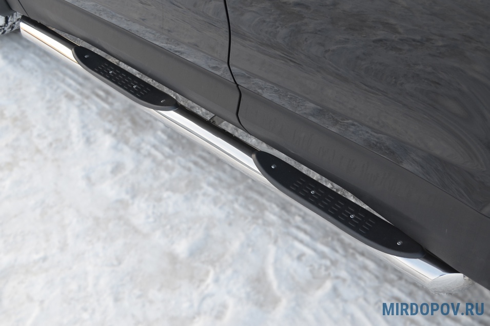 Пороги труба d76 с накладками вариант 1 RUSSTAL Hyundai Santa Fe (2009-2011) № HST-0007651