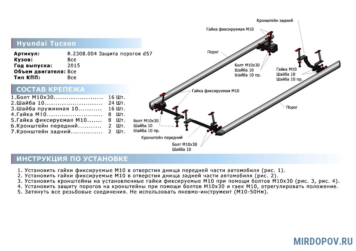 - Простота установки за счет точного совпадения штатных отверстий с элементами крепежа защиты.