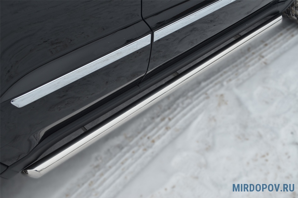 Пороги Russtal представляют собой накладки, выполненные в форме труб, которые создаются специально для конкретной модели автомобиля. В своем производстве специалисты ведущей российской компании используют полированную нержавеющую сталь итальянского производства. Данный материал отличается стойкостью к образованию коррозии, не боится механических и ударных нагрузок, сохраняет первоначальные качества и внешний вид на протяжении всего периода эксплуатации.