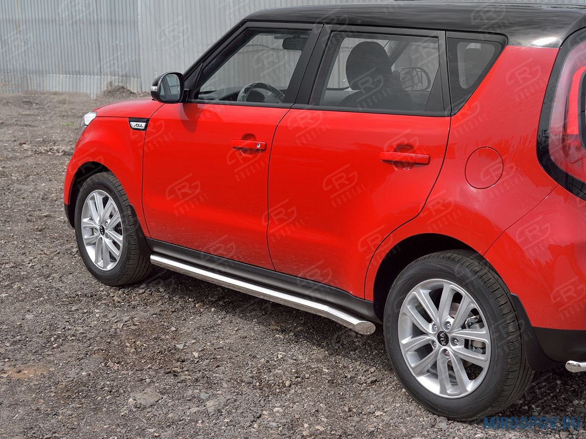 Пороги труба d63 вариант 1 RUSSTAL Kia Soul (2017-2019) № KSOT-0027531