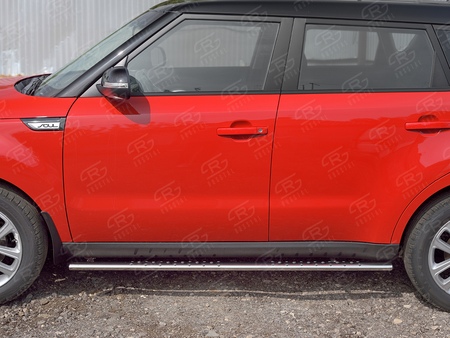 Пороги труба d75х42 овал с проступью RUSSTAL Kia Soul (2017-2019) № KSOO-002755