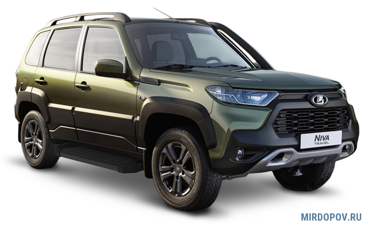 Пороги алюминиевые Black для Lada Нива Travel (2020-2025) № F160ALB.6006.1