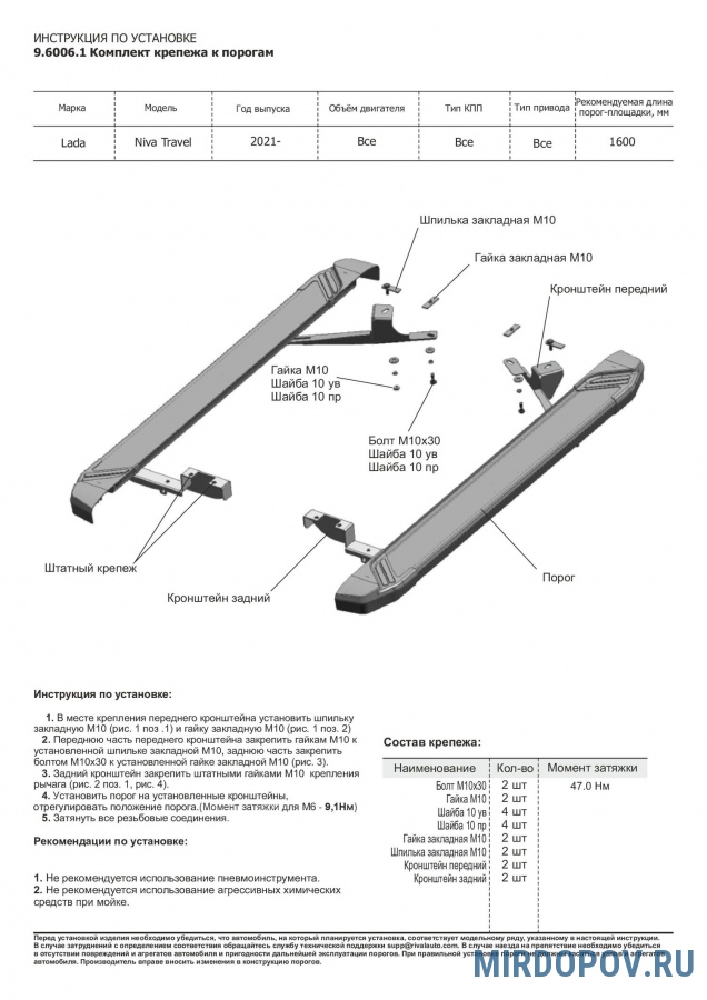 - Простота установки за счет точного совпадения штатных отверстий с элементами крепежа защиты.