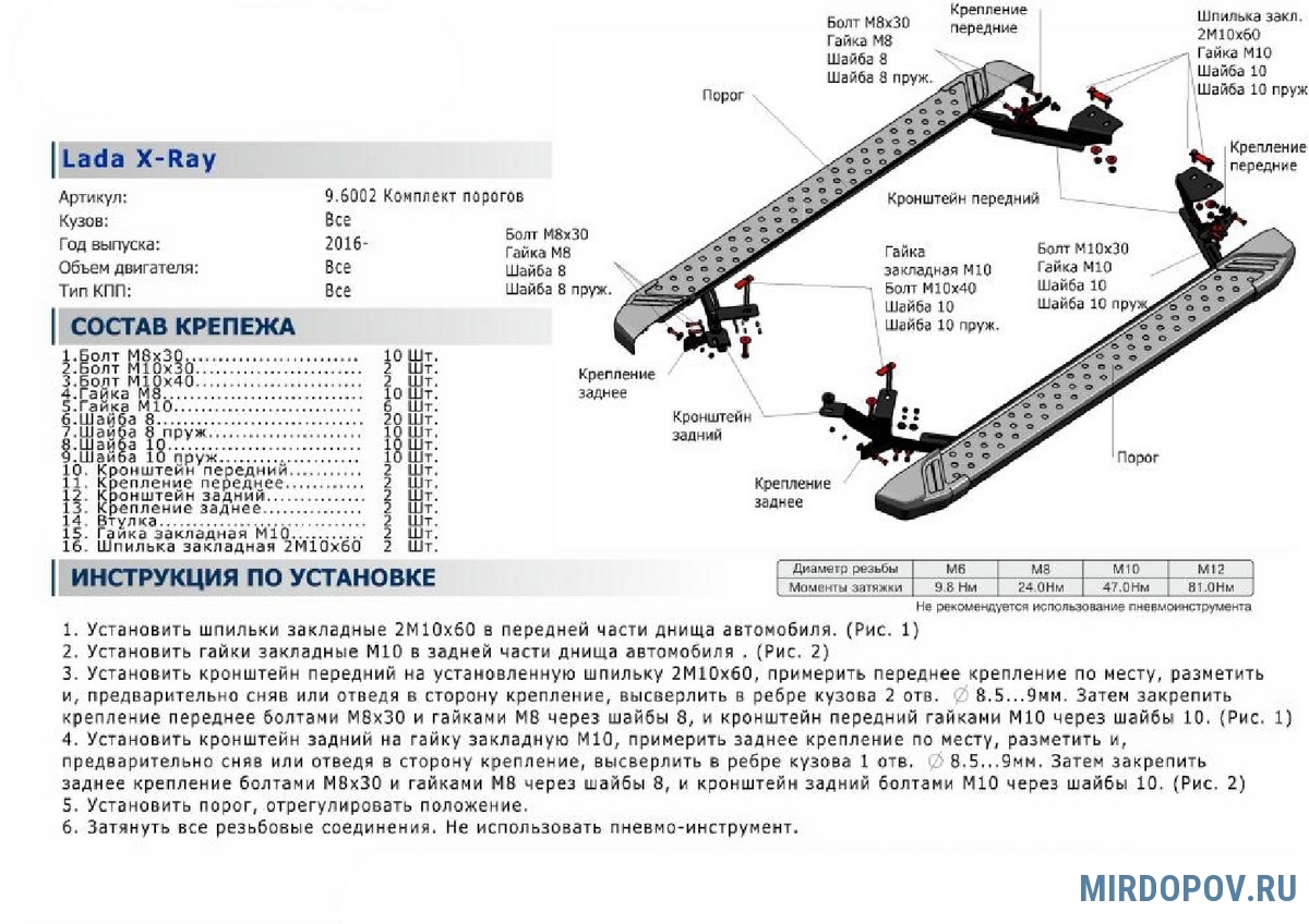 - Простота установки за счет точного совпадения штатных отверстий с элементами крепежа защиты.