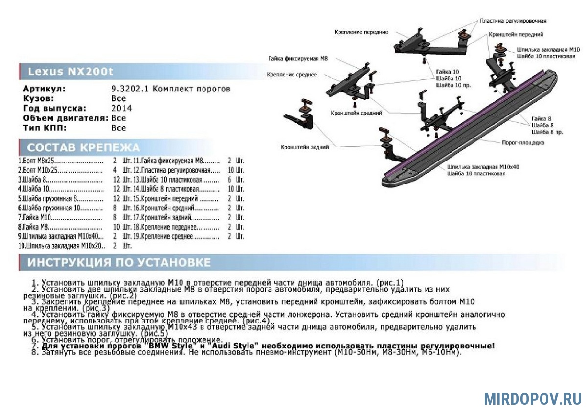 - Простота установки за счет точного совпадения штатных отверстий с элементами крепежа защиты.
