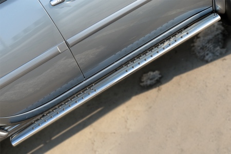 Пороги Russtal представляют собой накладки, выполненные в форме труб, которые создаются специально для конкретной модели автомобиля. В своем производстве специалисты ведущей российской компании используют полированную нержавеющую сталь итальянского производства. Данный материал отличается стойкостью к образованию коррозии, не боится механических и ударных нагрузок, сохраняет первоначальные качества и внешний вид на протяжении всего периода эксплуатации.