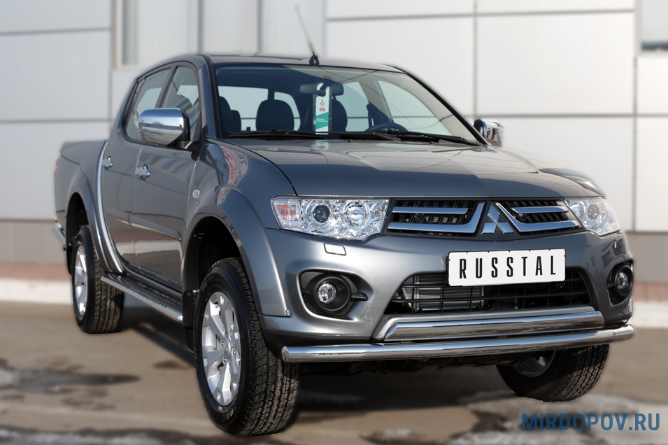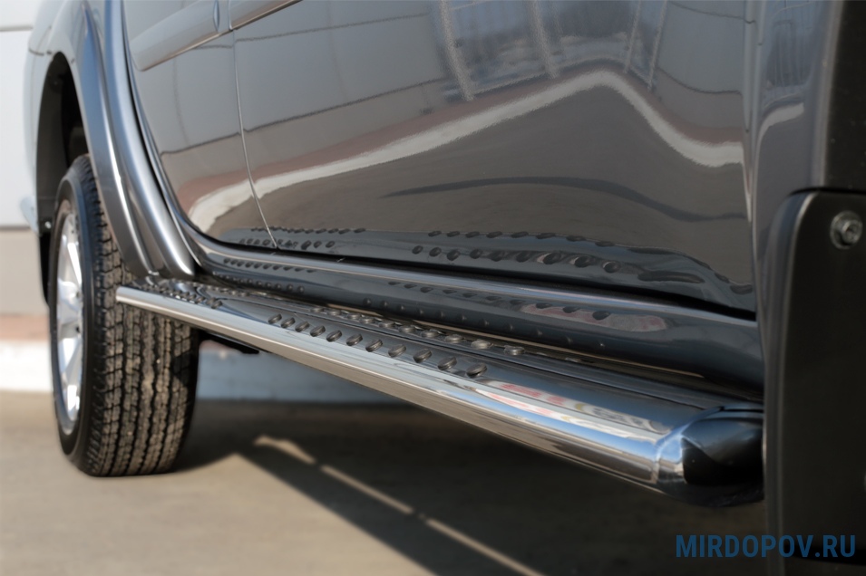 Пороги труба d120х60 овал с проступью RUSSTAL Mitsubishi L200 (2014-2019) № MLO-002041