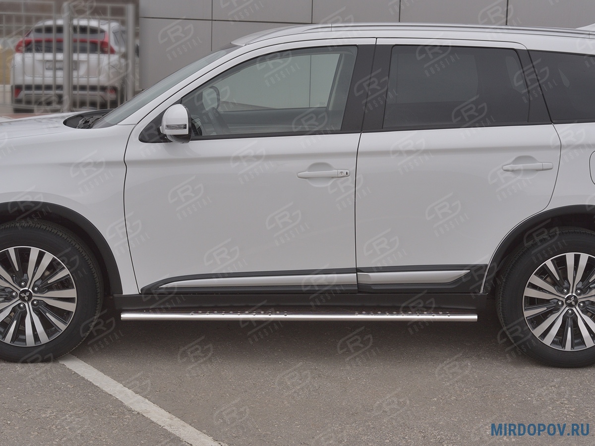 Пороги труба 75х42 овал с проступью RUSSTAL Mitsubishi Outlander (2018-2023) № MOO-003205