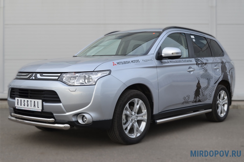 Пороги труба d63 вариант 2 RUSSTAL Mitsubishi Outlander (2012-2014) № MRT-0010532