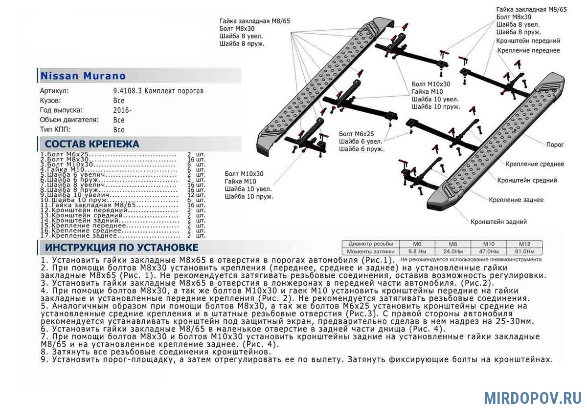 | Установка порогов (комплект) | от 4500 руб. |