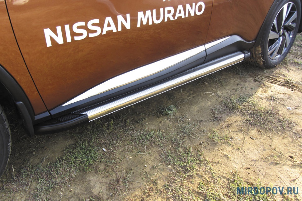 Пороги алюминиевые Luxe Silver серебристые Nissan Murano (2016-2023) № AL-NIM16004